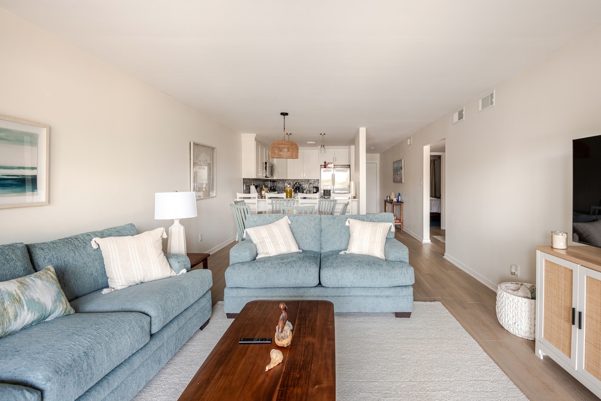 The pool is open for the 2026 season! See the ocean from the living room, master bedroom, and balcony. Two pools, gazebos, charcoal grills, & other great amenities. Condo is on the second floor of the B building (no elevators). Rental rates do not include fees and taxes added by Airbnb. Parking for two vehicles only - no trailer parking allowed. Ideal Retreat for Travel Nurses: Just 20 minutes from Carteret Health Care. All utilities and parking are included. Special rates available.