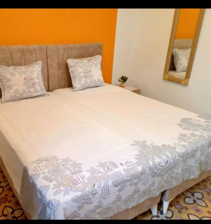 Apartament spațios în La Marsa, într-o reședință privată securizată👮🏻♂️ și un cartier liniștit, la 2 minute de mers pe jos de dotări (mini-market, cafenea, farmacie, brutărie, patiserie, restaurant italian, fast-food). Poate găzdui până la 8 oaspeți, are un living mare, este complet mobilat și utilat. Wi-Fi de mare viteză 5G, Smart TV cu YouTube, Netflix, Amazon Prime și IPTV cu toate canalele din lume📺. Situat pe podeaua unui triplex, complet independent și privat.