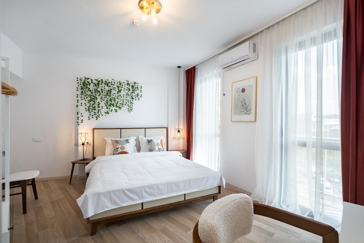 Experience the charm of our urban loft in the heart of the city! Enjoy the peace in our elegant bedroom, with wide windows that fill the room with sunlight, and settle into a luxurious marble bathroom. Located in a lovely neighborhood, this inviting space offers a fully equipped kitchen, a relaxing living area, and a small balcony. Perfect for the modern traveler who values style and comfort. Book your stay - delight in the simple luxuries and make this loft your personal hideaway.