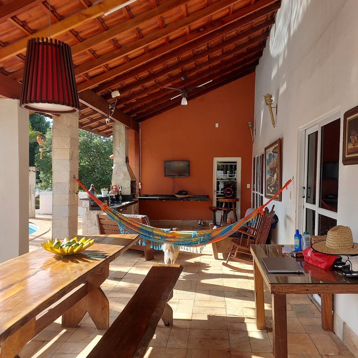 Spațiu rustic și confortabil pentru muncă sau petrecere a timpului liber, aproape de natură, lângă grădina forestieră, ideal pentru drumeții în aer liber, fără a pierde facilitățile zonei urbane. Oferim trei șezlonguri, ventilator de tavan, TV, Wi-Fi, balcon gourmet mare echipat cu trio miner (aragaz cu lemne, cuptor și grătar), congelator, frigider și aragaz. Avem, de asemenea, o curte în spate unde cultivăm fructe, o masă de picnic spațioasă și un loc unde să-ți păzești vehiculul.