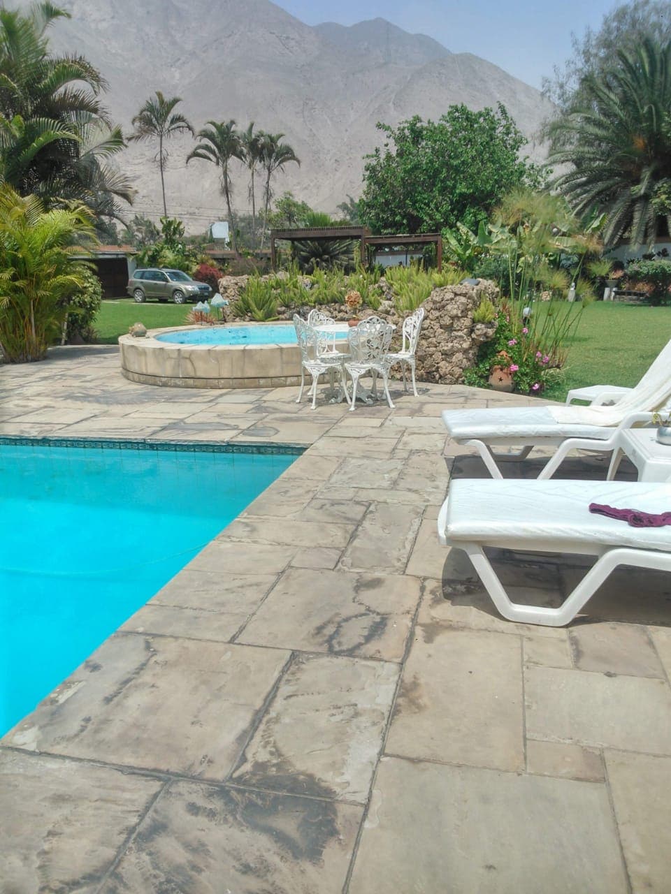 Casă la țară frumoasă într-una dintre cele mai bune zone din Pachacamac, Lima , Peru. Un loc minunat pentru a te odihni și a petrece momente plăcute în familie sau cu prietenii, cu 3600 m2 de grădini spațioase și copaci frumoși pentru a te bucura și a face activități în aer liber, o piscină mare și frumoasă și o terasă și o zonă de grătar pentru a pregăti un grătar delicios sau o pizza fabuloasă în cuptorul cu noroi. Iar iarna pot petrece momente calde lângă un șemineu din interiorul casei.