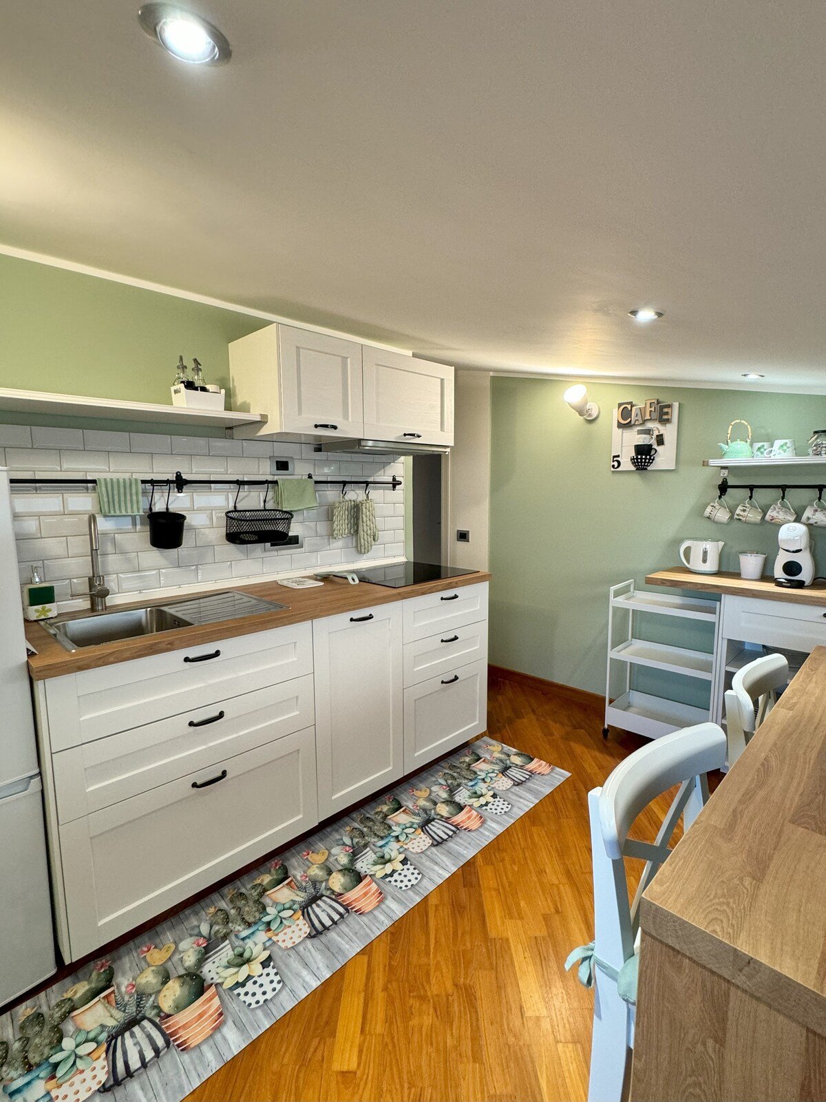 Apartamentul are 85 de metri pătrați și 50 de metri pătrați de terasă, mobilat cu masă, canapele și umbrelă. Renovat, se compune din 2 dormitoare cu 2 paturi duble. Bucătărie și living într-o singură cameră. Echipat cu aer condiționat și încălzire cu radiator, TV într-un dormitor și living, mașină de spălat rufe, mașină de spălat vase, fier de călcat, masă de călcat, tacâmuri, farfurii, săpunuri și șampoane. Acesta este situat la 200 de metri de gară, în zona înconjurătoare există numeroase locuri de parcare publice.