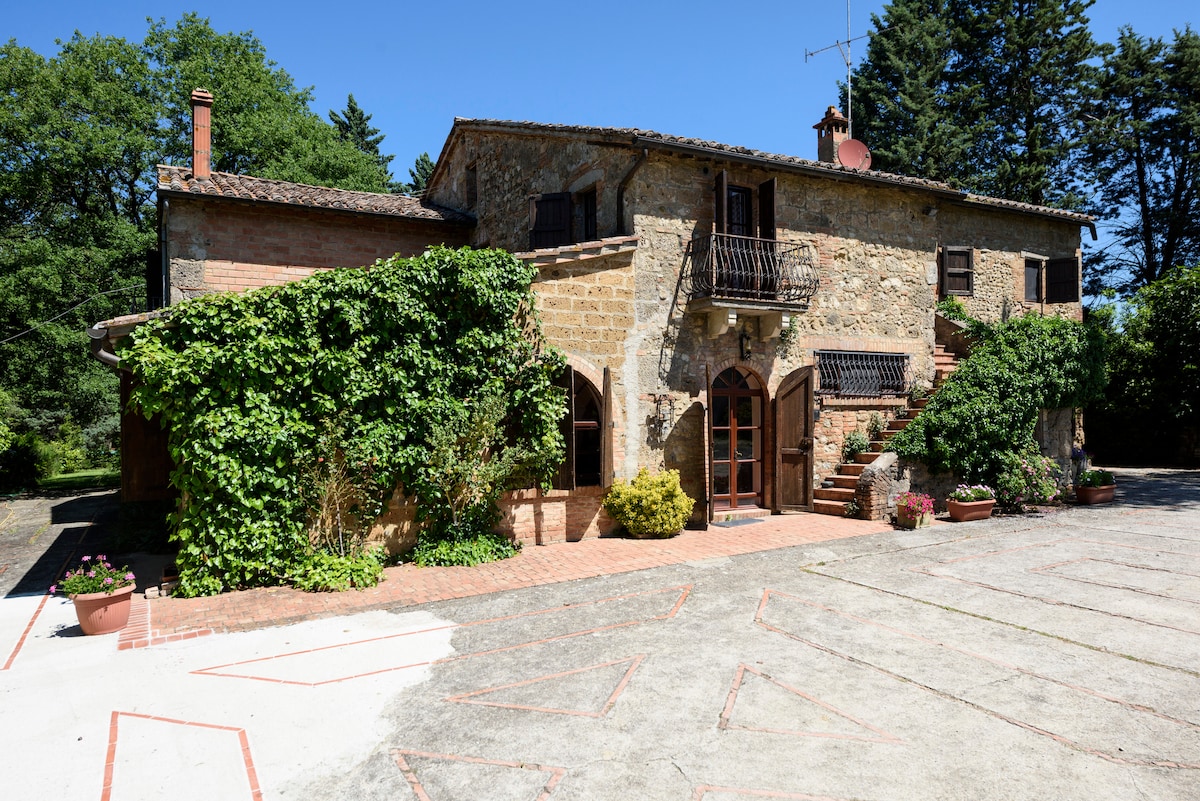 Casale toscano del '800 con pietre a vista immerso nella meravigliosa campagna Toscana con uno splendido panorama sulla Val di Chiana. E' circondato da un parco di 6 ettari con un uliveto di 300 piante. Si trova a Sarteano, nel paese, un antico borgo medioevale con un castello da sogno, conosciuto per il Festival della Musica e del Jazz che si svolge alla fine dell'estate. Siamo nella bellissima Val d'Orcia, patrimonio naturale dell'umanità dall'UNESCO dal 2004.