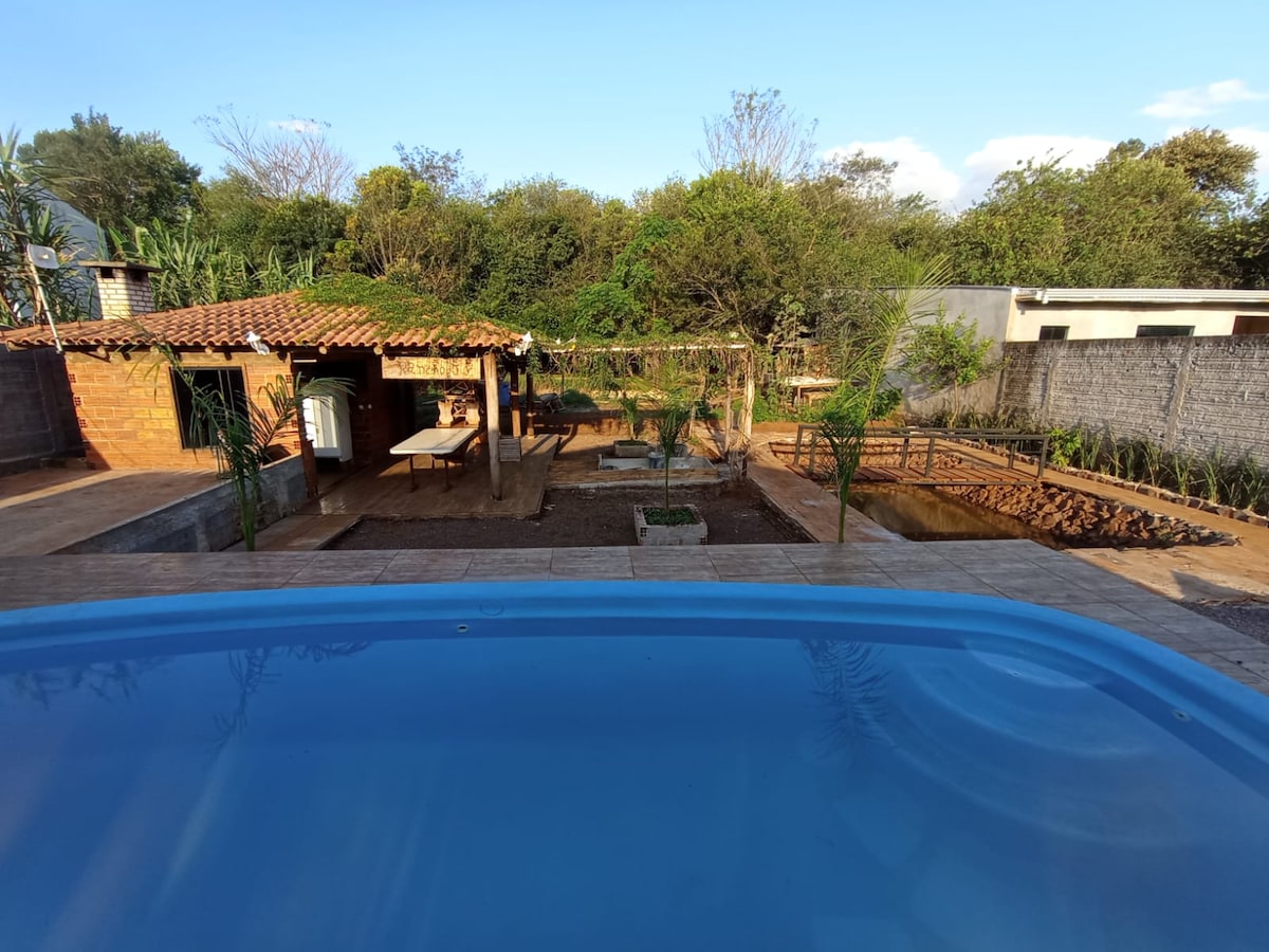 Chácara a 7km do show rural. Somente 600mts de estrada de chão. Casa em condomínio. 3 quartos mobiliados com cama e roupeiros Cozinha mobiliada com utensílios Edícula com espetos, grelha fogão a lenha e forno Piscina, banheira de hidromassagem. Local tranquilo e de fácil acesso