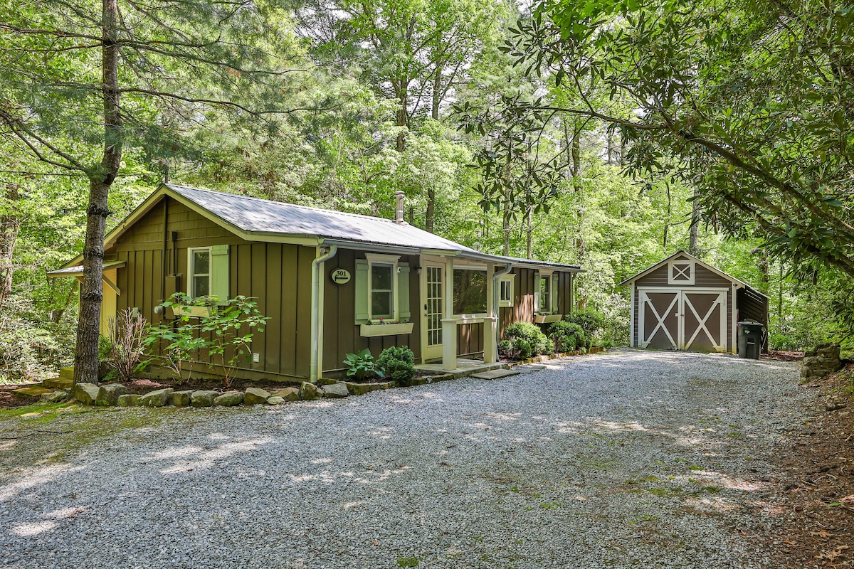 Creek-side Century' old Cedar Cabin-Rustic'n Romantic with charm'n comfort by creek *Deal now (till 2/28) *includes HotTub'-exclusively yours w/Robes & slippers. Non-Smoking comfy cabin, K.Bed, spacious grounds w/easy access, mountains surrounding a scenic country rd to bike or sweet stroll to enjoy. See 40+ pics w/captions. Close to great eateries, hiking, waterfalls, wedding venues'n more. A mile to lake, 5 miles to Cashiers, 10 more to Highlands. Updated, Century-old when Simplicity was key!
