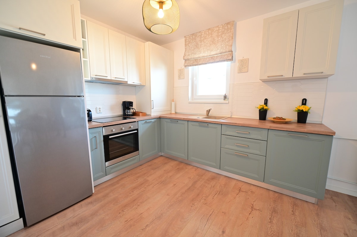 Bine ai venit într-un apartament rafinat de 64 m² lângă lacul Binder, situat în The Lake Home Residence. Designul delicat și confortul contemporan se întâlnesc într-un cadru rezidențial liniștit. Lucrările de artă originale sunt plasate cu atenție în întregul spațiu, adăugând o energie creativă distinctivă, unică acestui spațiu. Apartamentul oferă un dormitor liniștit, o zonă de living deschisă, o bucătărie complet utilată și un balcon privat. O cadă rară și o parcare privată completează experiența, la câteva minute de centrul istoric al Sibiului.