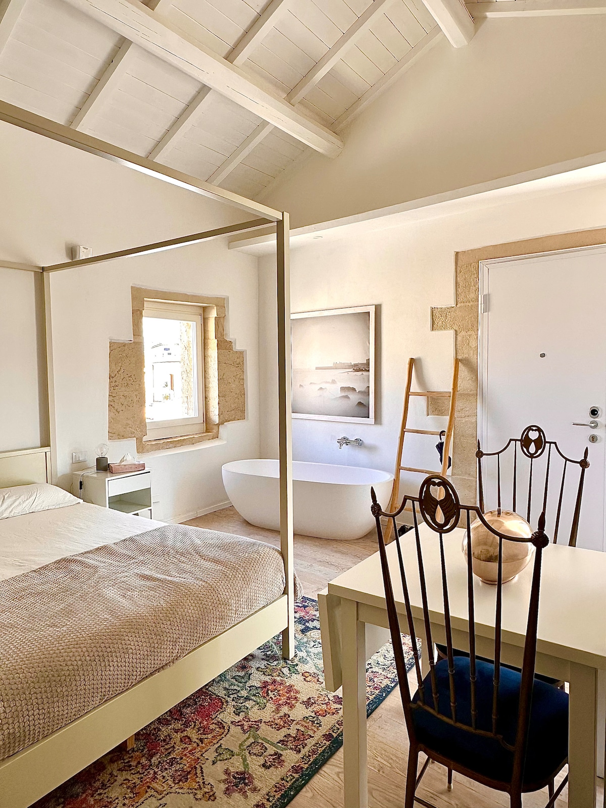 Elegante suite con terrazza vista mare nel cuore di Ortigia, il centro storico di Siracusa. Situata al secondo piano di un edificio storico, la suite si affaccia sull’unica porta di origine spagnola ancora esistente sull’isola. Il vero gioiello della casa è la splendida terrazza privata con vista sul mare. La posizione è ideale per esplorare Ortigia a piedi: mare, monumenti, ristoranti tipici, mercati locali e le piazze più belle di Siracusa sono tutti a pochi minuti.
