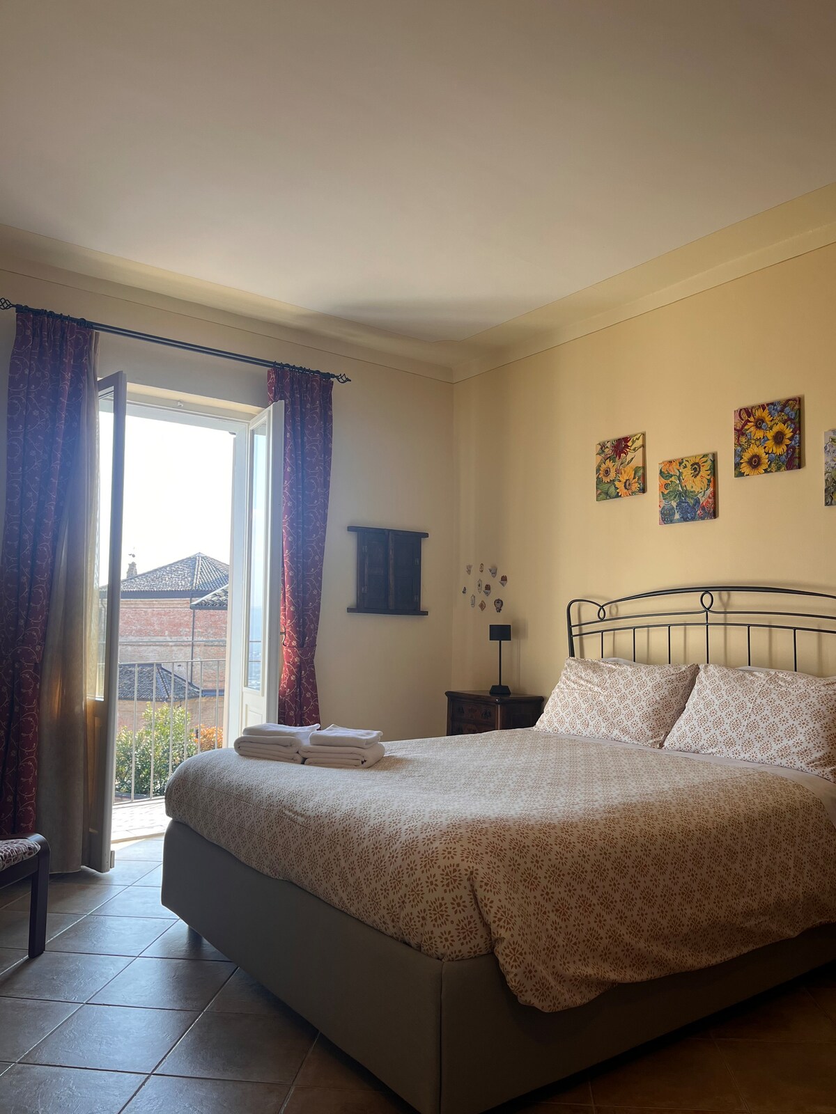 Un apartament într-o casă recent renovată din secolul al XVII-lea, cu vedere la castelul Serralunga d'Alba și la podgoriile din jur, de care te poți bucura din orice cameră sau de la balconul mic care aparține apartamentului. Potrivit pentru o ședere romantică (fără alți oaspeți în cartier), pentru degustări de vinuri (faimoasele podgorii Barolo și crame sunt peste tot în jur) sau pentru o ședere în familie, utilizând bucătăria complet utilată.