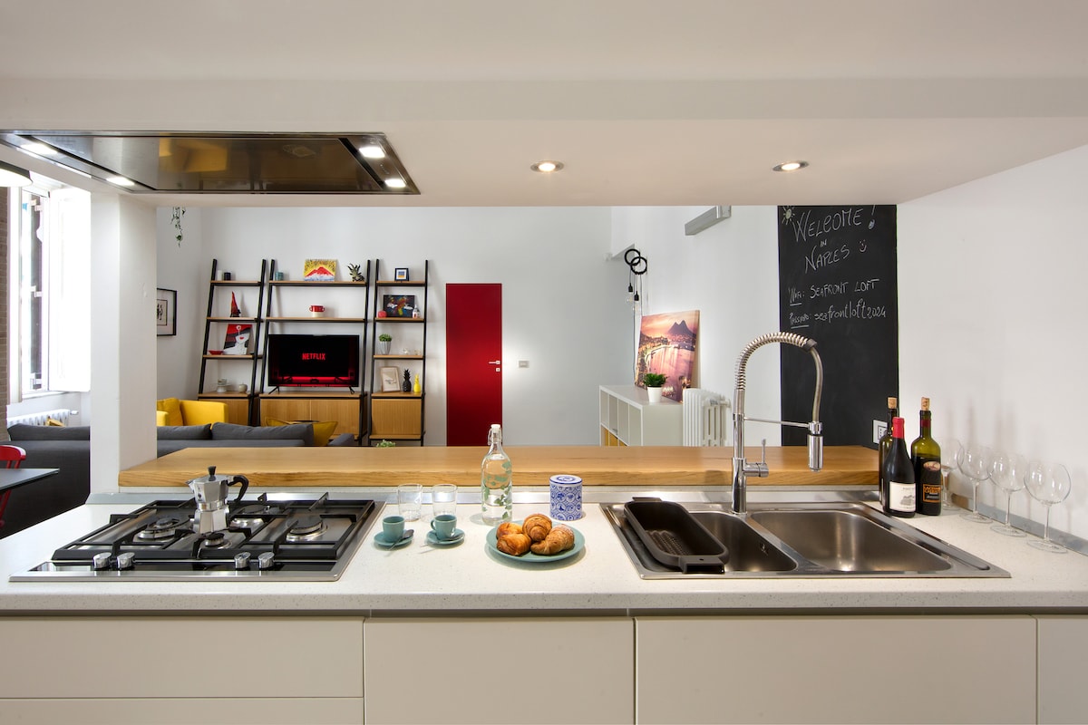 Loft uimitor, cu o priveliște atât de romantică și uluitoare încât îți vei aminti de ea! Un apartament mic, perfect pentru un cuplu, singur sau cu copii. 2 paturi duble (unul la etaj, cu televizor inteligent - unul în living/pat super confortabil de 120 cm lățime ) , bucătărie, mașină de spălat și uscător . Aer condiționat, Wi-Fi gratuit, baie panoramică cu duș christal. Cel mai bun mod de a vizita orașul dintr-un punct de vedere incredibil și într-o atmosferă relaxantă și liberă. Imposibil să nu te îndrăgostești!