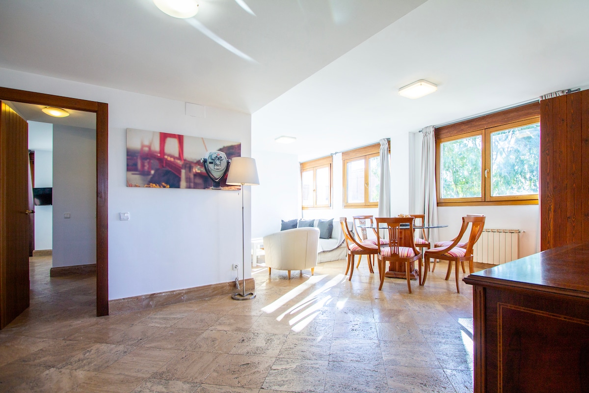 Plaza de España este un apartament confortabil pentru 2 persoane, cu decor elegant și toate facilitățile necesare pentru a-ți face șederea perfectă. Apartamentul este format dintr-un dormitor dublu cu dulapuri, un living cu o canapea confortabilă, zonă de luat masa, baie completă cu duș mare și o bucătărie complet utilată cu aragaz, cuptor cu microunde, mașină de spălat vase, mașină de spălat rufe, cafetieră Nespresso, prăjitor de pâine, fierbător, veselă și ustensile de bucătărie.