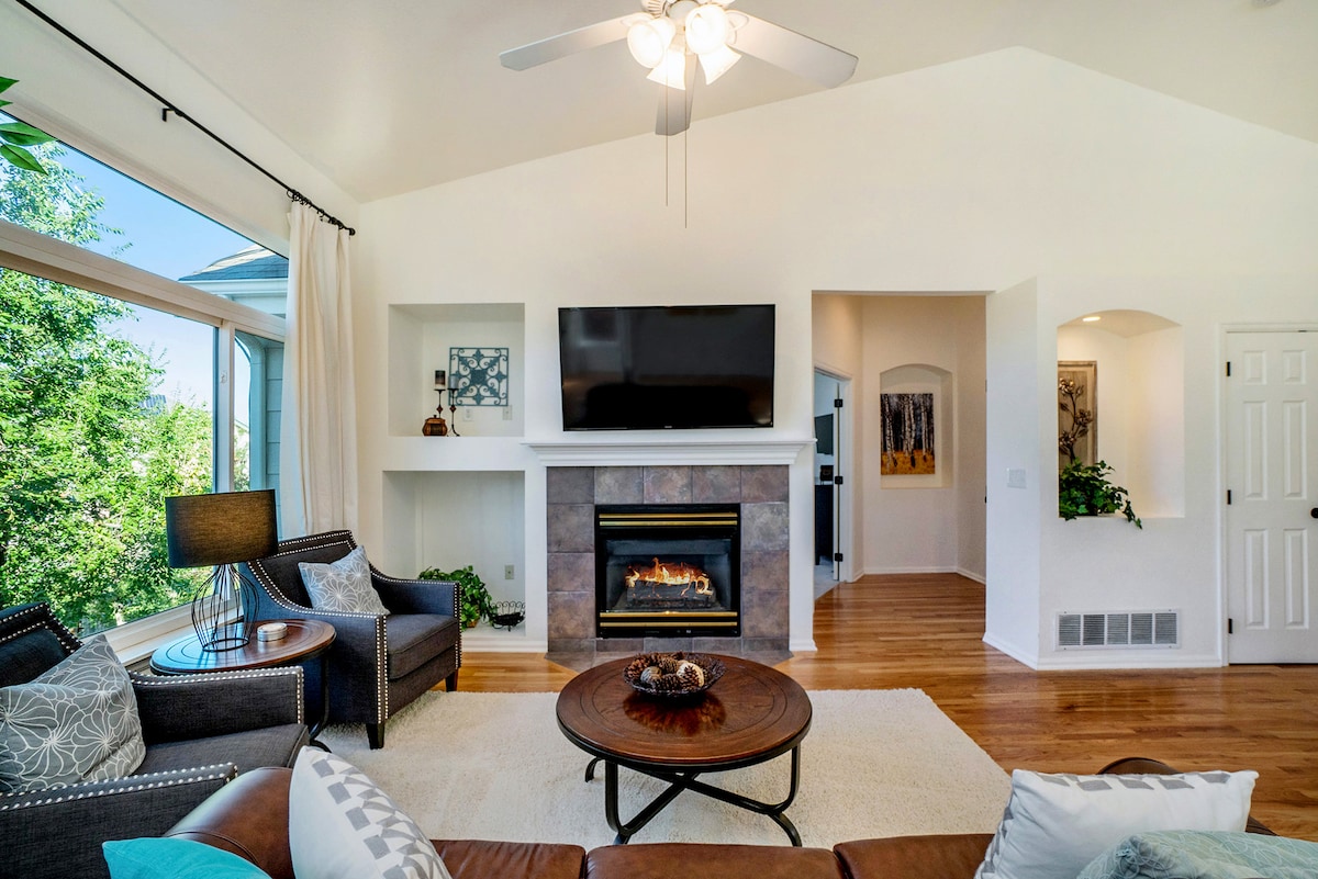 Relaxează-te în această casă complet mobilată, cu 3 paturi/2 băi, cu două locuri de parcare în garaj, o punte și o curte privată. Perfect pentru vacanțe de familie, grupuri de prieteni sau profesioniști care lucrează. Farmecul orașului mic, cu proximitate față de parcurile premiate, tiroliană, călărie, fabrici de bere și restaurante eclectice. Aproape de frumosul parc de stat Castlewood Canyon pentru acces ușor la drumeții și minute până la mall-ul Outlet și Promenadă. Capacitate maximă 6 adulți plus 1 bebeluș.