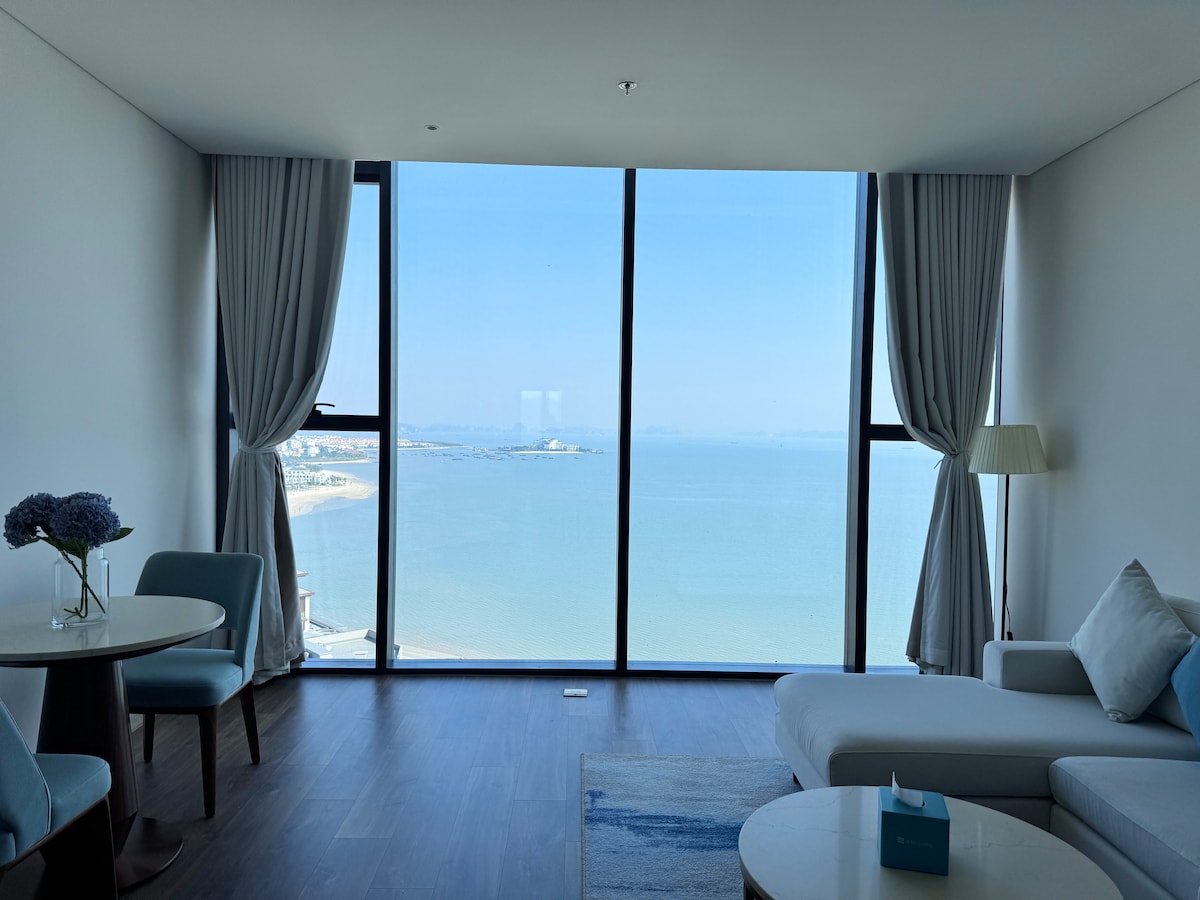 Wake up to the beauty of Ha Long Bay right from your room. This cozy seaview apartment offers a peaceful stay above the city, with large windows bringing in natural light and stunning views of the bay from morning mist to glowing sunsets. Located in a high-rise beachfront building, you’re close to the beach, cafés, and attractions — yet enjoy a quiet, private space to relax and unwind.