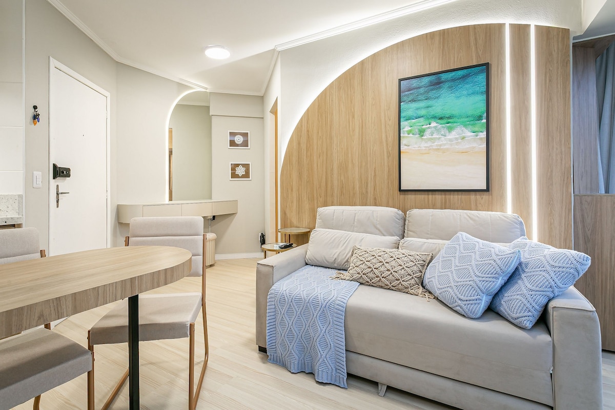Descoperă loft-ul de vis din Florianópolis! La doar 10 minute de mers pe jos de Centrul de evenimente Acest spațiu fermecător și confortabil oferă totul pentru o ședere perfectă: Aer condiționat, bucătărie completă, spălătorie, check-in independent, birou de acasă cu monitor, internet ultra-rapid și Netflix Garaj („sertar”) acoperit non-stop, iar concierge-ul îți garantează siguranța. Aproape de tot: Catedrală, piață publică, baruri și plaje. Confort, practicitate și locație imbatabilă vă așteaptă! Trăiește o experiență deosebită!