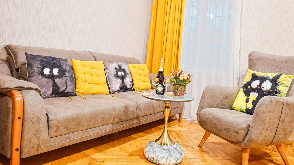 Evadează în paradisul tău privat de divertisment din Kutaisi! Fie că plouă sau că e foarte cald afară, apartamentul nostru este refugiul perfect pentru a te relaxa, a te destinde și a te distra, situat la doar zece minute de mers pe jos de centrul orașului. Intră într-un apartament elegant și confortabil, conceput atât pentru relaxare, cât și pentru divertisment. Spațiul este cinematograful tău personal și sala de jocuri, toate într-unul singur.