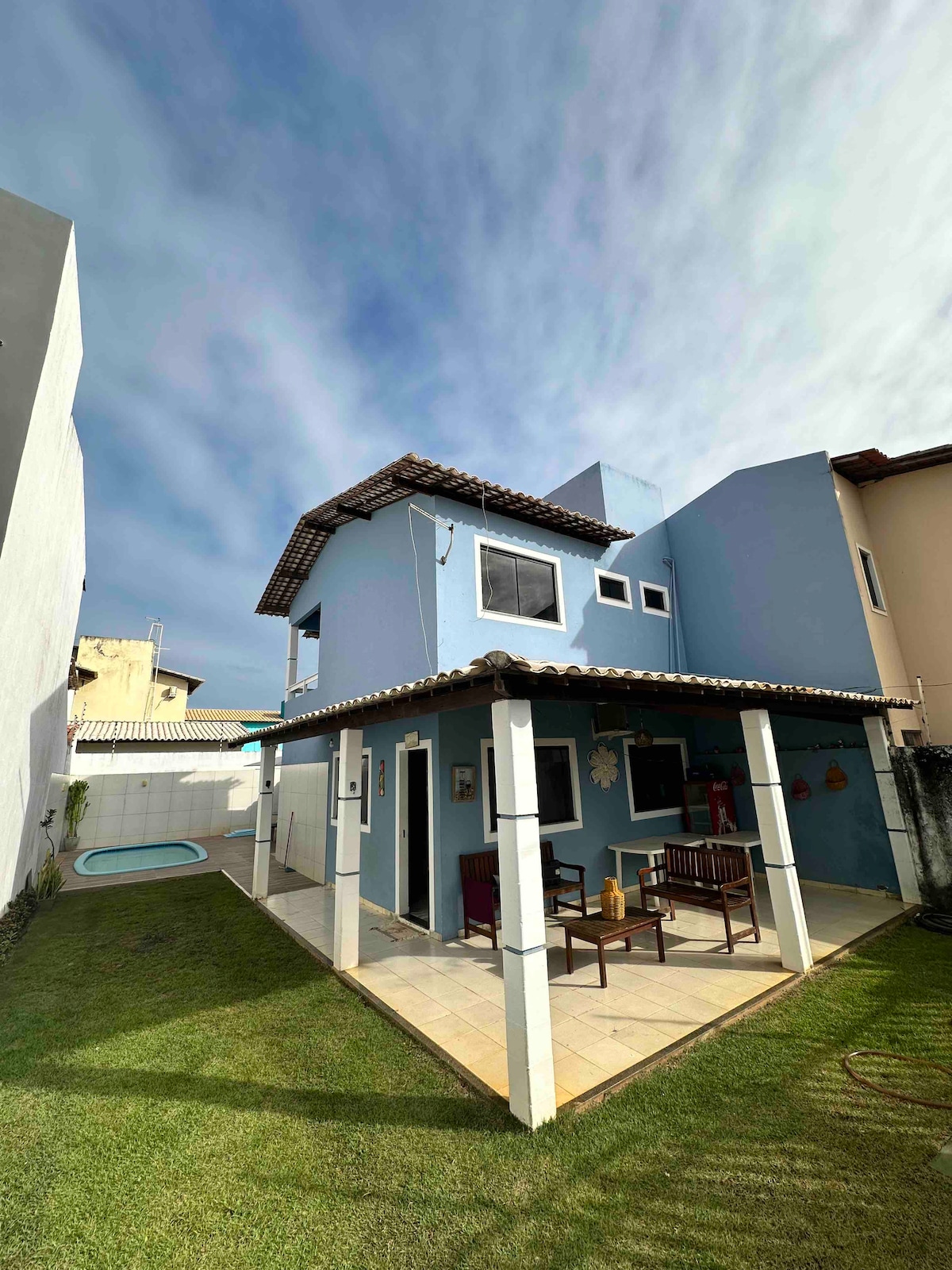 Casă situată la 500 m de plaja Abaís (Estância/SE). Acesta conține 3 dormitoare (1 apartament), plus o baie socială, un living mare (canapele, mese, scaune și TV), o bucătărie completă (congelator, un frigider, o aragaz, tacâmuri, o oale și tigăi, farfurii și pahare), o piscină și un grătar cu 2 mese și 12 scaune afară. Zona exterioară are, de asemenea, 2 hamace pentru odihnă. Spațiu de garaj pentru până la 3 mașini mici. Îți recomandăm să vizitezi Lagoa dos Tambaquis, care se află la 1 km de casă.