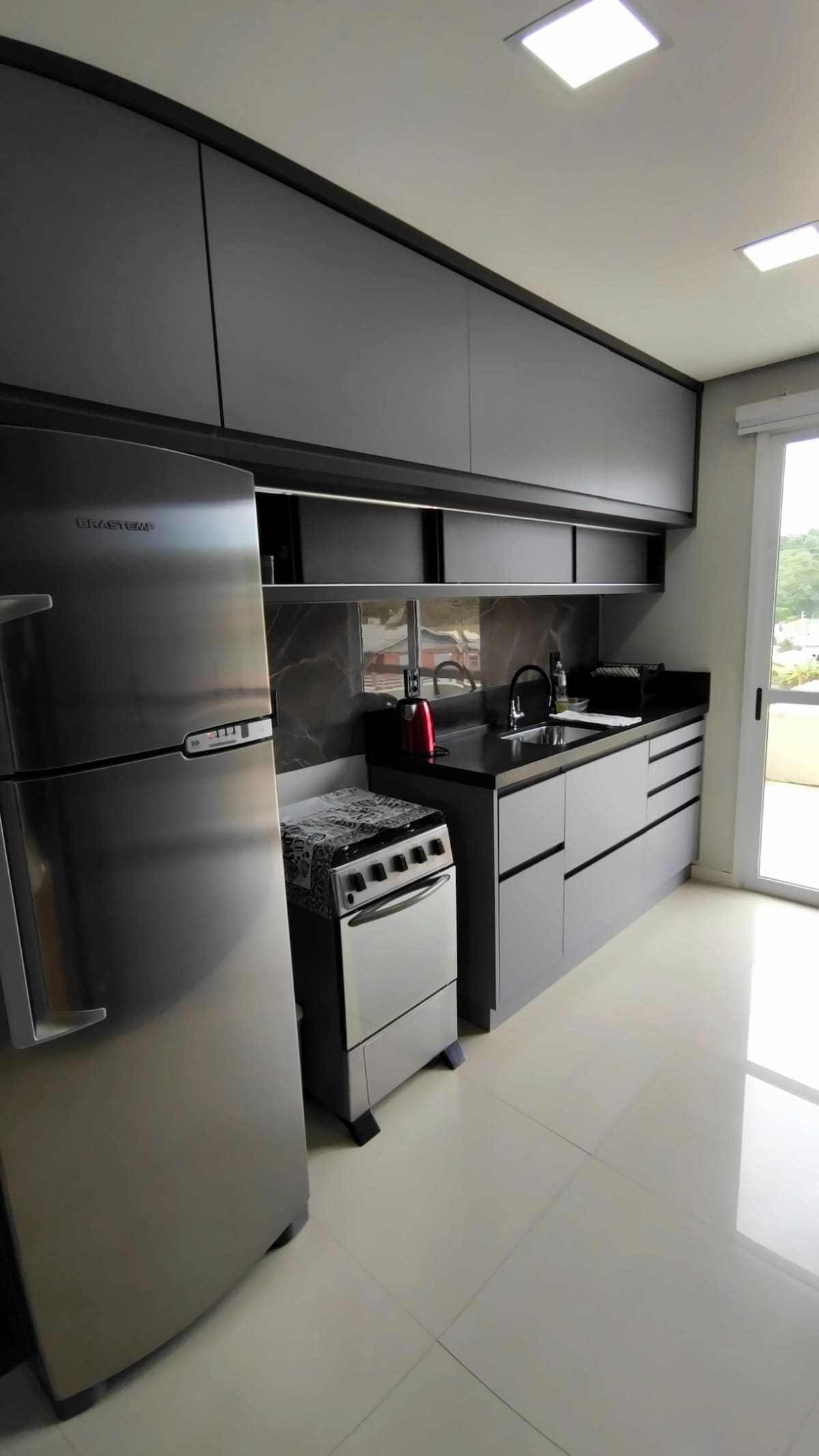 Loft 45m2 confortabil și liniștit. Centrul orașului este aproape de toate. * Bucătărie completă * Acces ușor la parcare * Mașină de spălat și uscat * WiFi 500mb * Smart TV 75" * 336 de canale libere * Aer condiționat de 18.000 btus * Passador Roupas * Spațiu de lucru la domiciliu * Uscător de păr * Prosoape de pat și de baie envoval