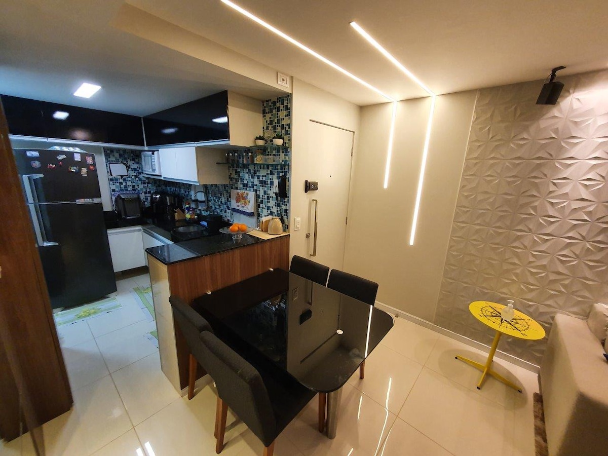 Apartament de lux cu 3 apartamente, toate camerele cu aer condiționat, balcon gourmet cu grătar și bere. Situat în Golf Ville Resort Residence, cel mai mare și mai complet condominiu din regiune, cu peste 100 de opțiuni de petrecere a timpului liber, terenuri de tenis, tenis de plajă, Pickeball, squash, bocha și multi-sport, două restaurante exclusive, teren de golf și 5 minute de Beach Park