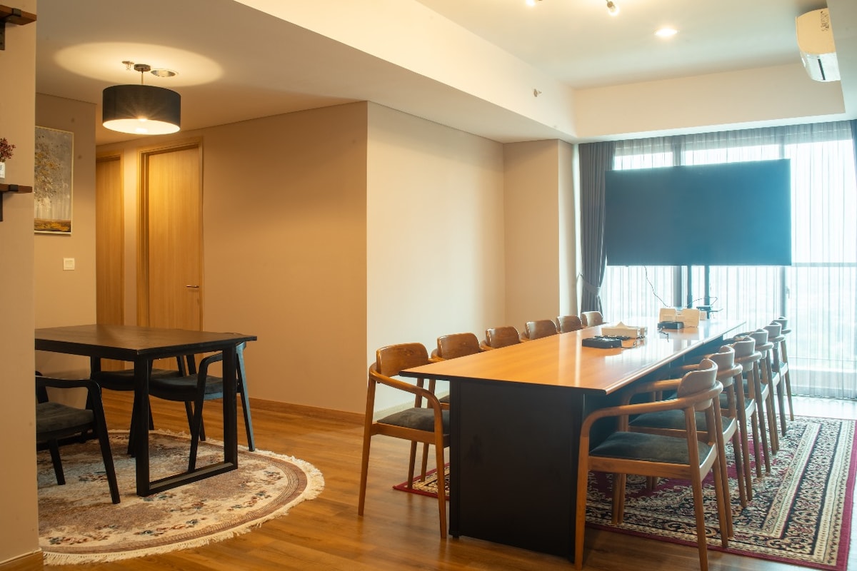 Gestionat profesional de Kozystay Un refugiu al eleganței în centrul Jakartei, acest apartament premium cu 2 dormitoare îmbină designul modern cu confortul senin. Relaxează-te lângă piscină sau în spațiul de locuit luminos, care oferă combinația ideală de spațiu, intimitate și sofisticare. DISPONIBIL PENTRU OASPEȚI: + Check-in digital + Curățat profesional (dezinfectat) + Dotări hoteliere și lenjerie de pat proaspătă + Wi-Fi gratuit de mare viteză și televiziune prin cablu + Acces gratuit la Netflix
