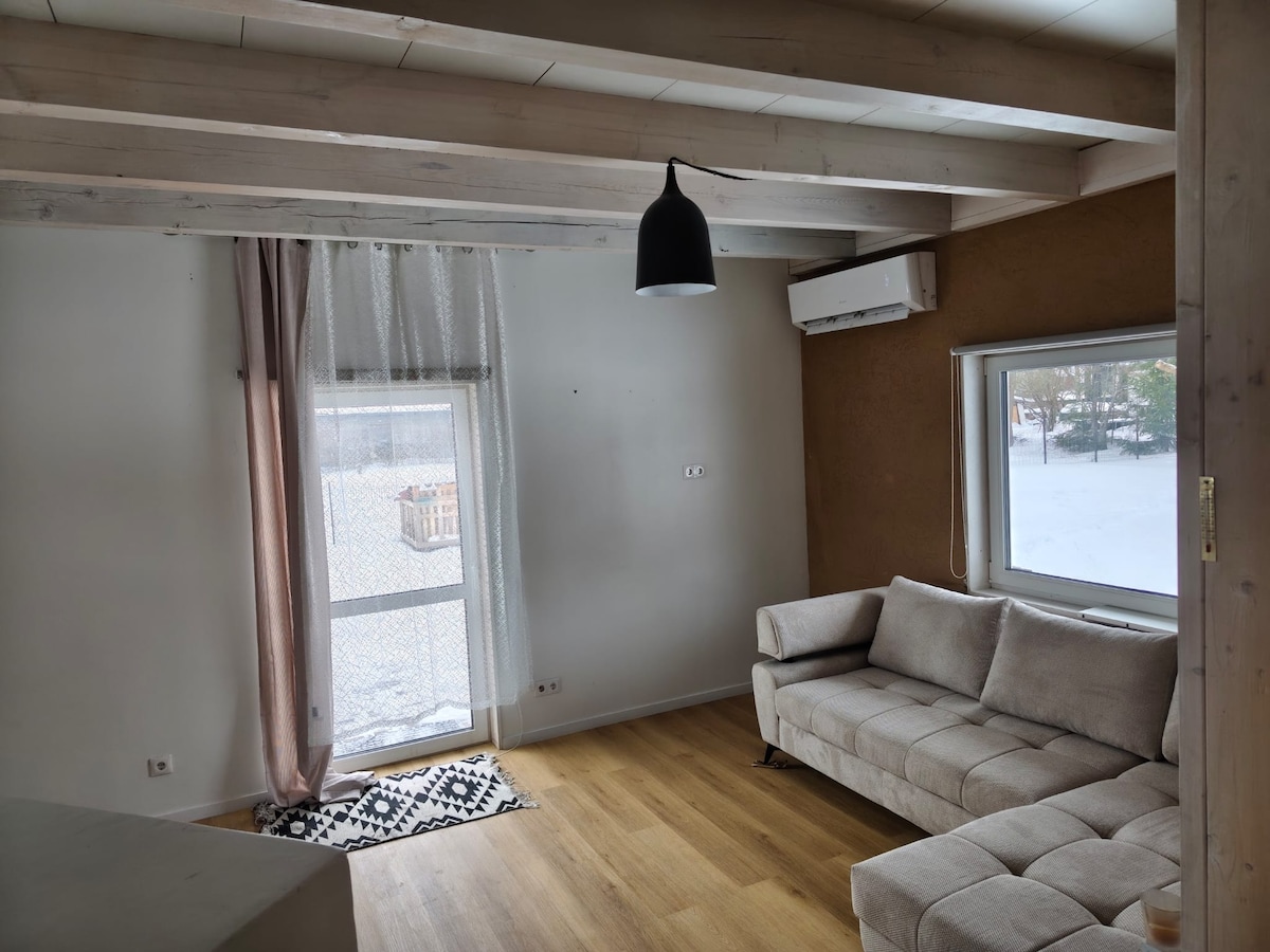 Apartament confortabil cu 2 camere de închiriat în centrul orașului Jelgava. Apartamentul este complet echipat pentru confortul tău: pat dublu spațios (200x180 cm) și o canapea extensibilă, Smart TV și Wi-Fi rapid, bucătărie cu tot ce ai nevoie pentru gătit. Locație: Un parc frumos este chiar lângă casă, perfect pentru cafeaua de dimineață sau plimbările de seară. În clădirea învecinată vei găsi restaurantul „Parks”. Deoarece se află chiar în inima orașului Jelgava, toate magazinele, cafenelele și mijloacele de transport public sunt la doar câțiva pași.