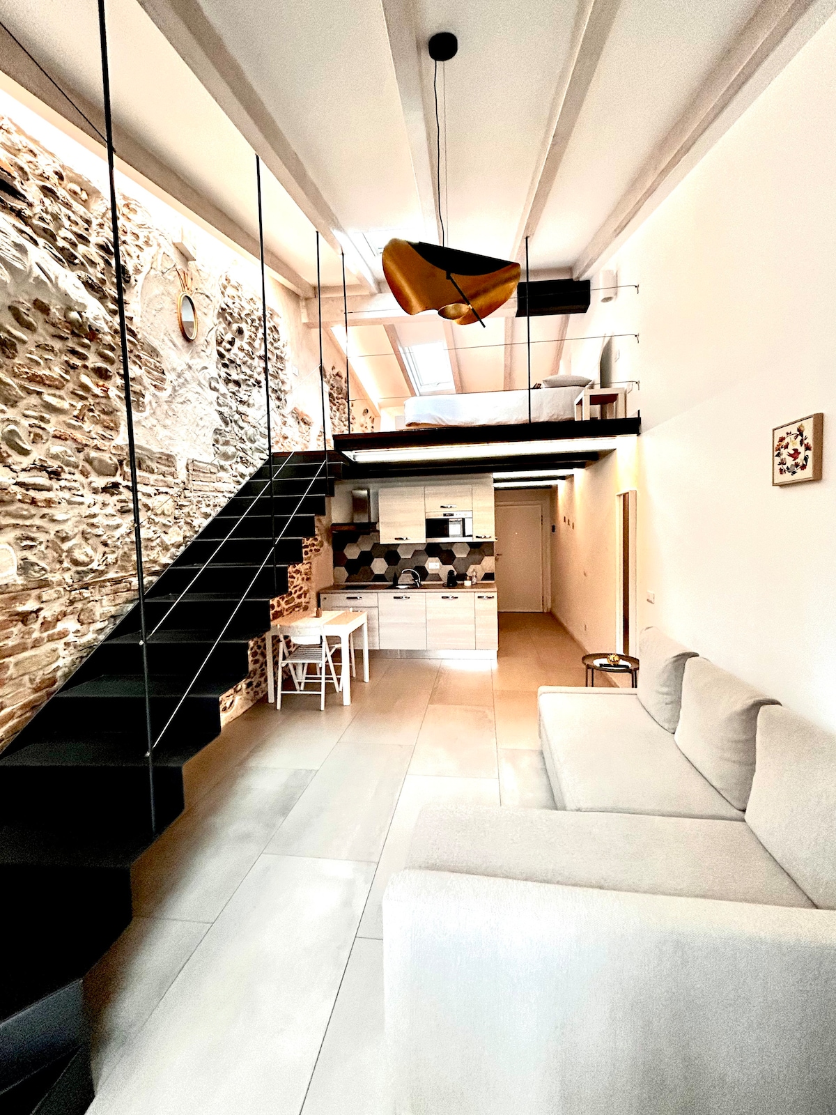 In the enchanting heart of the historic center of Alzano Lombardo, there is a bright and elegant apartment, an oasis of elegance just 10 km from Orio Airport (BGY) and only 7 km from the vibrant city of Bergamo, accessible by car or by the TEB Valley tram, with a stop just minutes from the apartment. Designed to offer maximum comfort after a day of exploration or as an exclusive space for business travelers, it is ideal for those seeking an unforgettable stay.