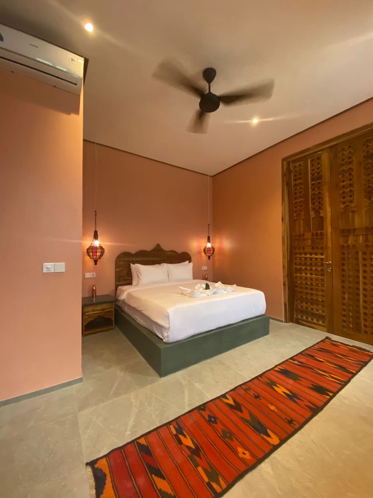 În inima orașului, dar ascuns ca un secret, acest hotel cu 6 camere este o oază liniștită la doar 200 m de plajă. Fiecare spațiu este proiectat cu grijă, îmbinând designul elegant marocan cu spiritul relaxat al Bali. Textilele luxuriante, cele mai bune lenjerie de pat și decorul personalizat creează un sentiment de calm, în timp ce piscina centrală invită dimineți lente și după-amiezi însorite. Ospitalitate caldă pe insulă într-un cadru îndepărtat. Evadează ca de obicei. Descoperă frumosul.