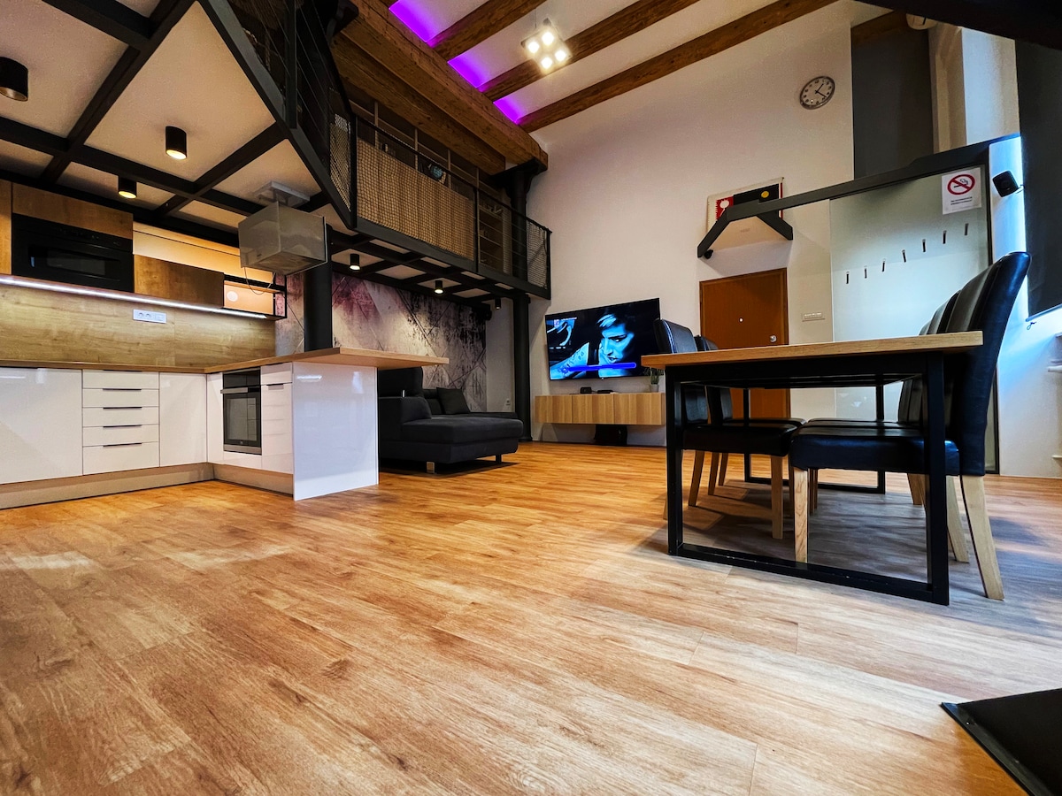 Bucură-te de o experiență elegantă în acest penthouse situat central, cu terasă. Terasa oferă vedere la două dintre cele mai emblematice clădiri din Ljubljana, clădirea Nebotičnik, cu o privire asupra dealului castelului și a clădirii TR3. La doar 100 m de apartament te vei afla în cel mai mare parc al nostru numit Tivoli. Centrul vechi cu baruri, restaurante și toate magazinele este la doar 5 minute de mers pe jos. Dacă dorești o noapte la operă sau un spectacol de teather, toate sunt după colț.