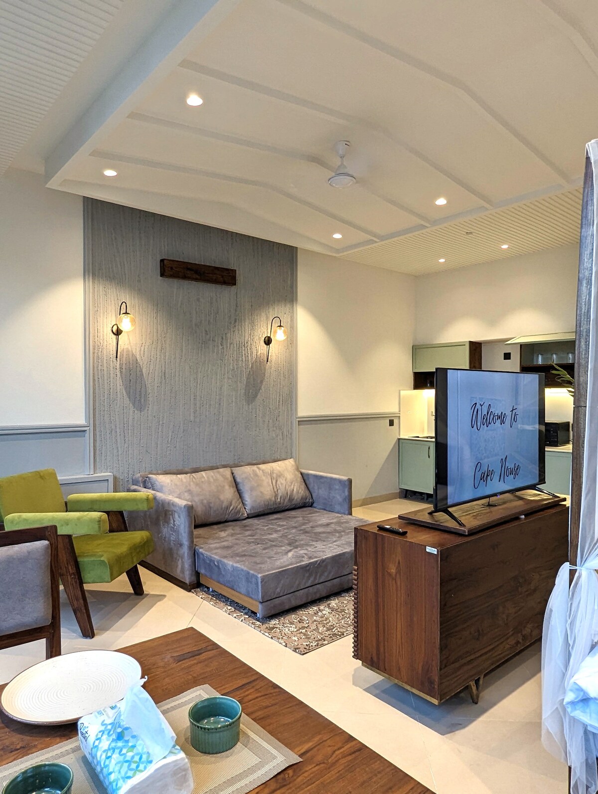 A rare hexagon duplex that frames the mountains. Design forward, warm, and quiet. Perfect for couples or a small family. Evara is for guests who love design. The hexagon shape gives you glass on every side and the view feels close. The living space is open, the bedroom is cozy, and the sky is always near. WiFi is fast, power is backed up, and parking is free. Drive in from Delhi or take the train to Kathgodam. Quiet hours keep the mood gentle.