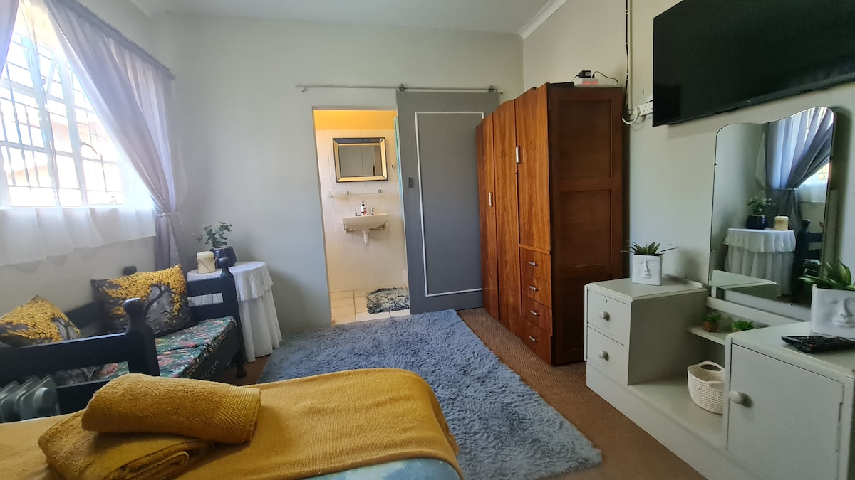 Unitatea oferă cazare confortabilă pentru o familie mică sau călători de afaceri. Are 2 dormitoare cu pat dublu în fiecare. Baia este dotată cu duș, toaletă și chiuvetă. Prosoape furnizate. Unitatea are o zonă privată braai, cu toate echipamentele braai necesare. Bucătăria este dotată cu frigider, cuptor cu microunde, friteuză cu aer, aragaz cu două plăci, fierbător de apă, prăjitor de pâine și tacâmuri necesare. Unitatea oferă aer condiționat, TV cu o mare varietate de canale și Wi-Fi gratuit. Parcare securizată.