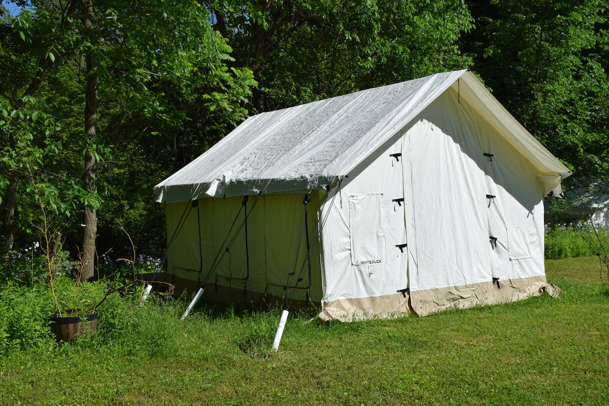 Our off-grid canvas tent is situated at the edge of a meadow, surrounded by blueberry bushes. It's just 4.5 miles to Main St in Livingston Manor, and 35 minutes to Bethel Woods. We provide a full-size bed (w/ heated mattress pad), fire pit, firewood, propane heater, and solar power. You have access to a private outhouse with composting toilet & outdoor shower on-site, and a conventional shared bathroom if you preferred. We are an LGBTQ+ inclusive space.