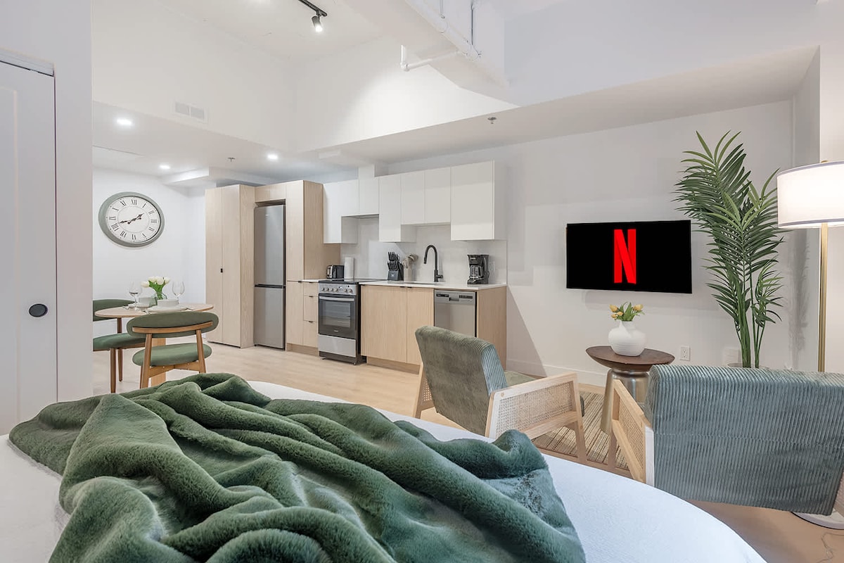 Bine ai venit într-un apartament luminos și confortabil, cu 1 dormitor, în inima centrului orașului Montreal. Perfect pentru până la 4 oaspeți, acesta are un pat queen-size, o canapea extensibilă și o baie. Bucură-te de o bucătărie complet utilată, de un spațiu de locuit confortabil și de Wi-Fi rapid. La câțiva pași de restaurantele de top, magazinele și atracțiile orașului, este baza ideală pentru a explora Montrealul în confort și stil.