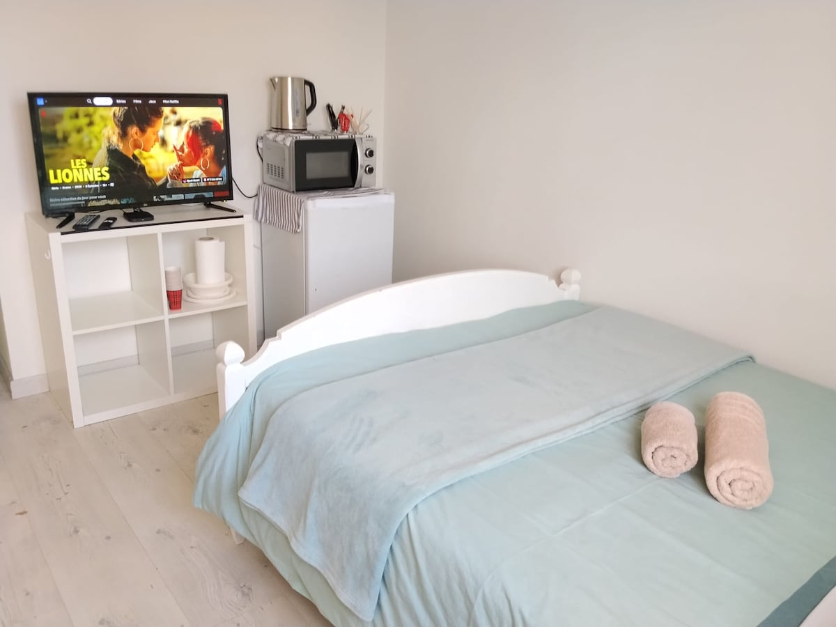 Situat la 3 km de axa Rennes / Saint Malo / Dinan din. (Rennes 15 km, Cap malo 3 km) Apartamentul confortabil de nefumători de 35 m2 a fost renovat pe o proprietate privată. Intrarea independentă se află pe frontonul fermei. Te așteaptă un loc de parcare. Dormitor cu un pat de 160. Suntem încântați să îți urăm bun venit într-o călătorie pentru vacanța ta de afaceri, weekend. Animalele de companie nu sunt acceptate