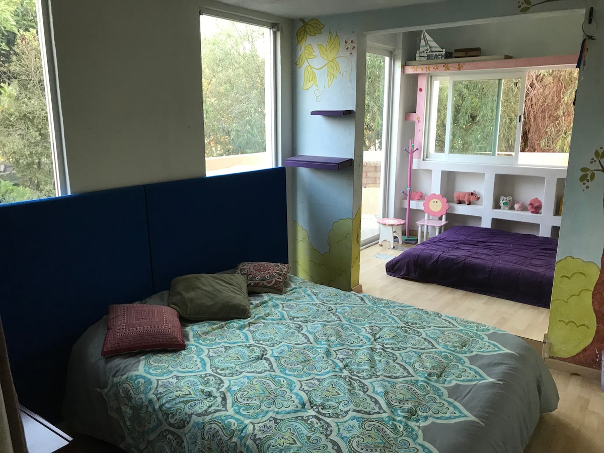 House with BIG apartment for large families, easy access to everything. Close to Everything and Paseo Altozano. All amenities. 3 Rooms: each with full baths and a/c. Living Room, TV with streaming channels, Dining Room, Kitchen, Bar and 1 Car Garage. Very comfortable for 6 people (MAX of 8 in stays of 2 days or more). Home away from home! EXTRAS: -Washer & Dryer X $400mx/US$25 per stay -Option to rent Lower floor apartment for 4 more people -Option to rent party room for 30 people