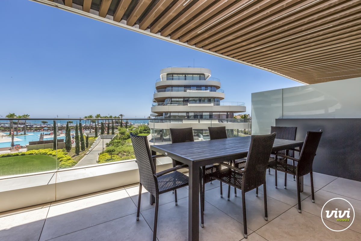 Descoperă luxul și confortul în acest sanctuar de pe plajă din Malaga Towers. Acest apartament elegant cu două dormitoare are un design spațios în plan deschis, care îmbină perfect livingul interior și exterior. Bucură-te de mobilier contemporan de designer, lumină naturală abundentă și dormitoare liniștite cu băi elegante. Relaxează-te pe terasa cu priveliști uimitoare și explorează plajele și magazinele din apropiere. Acest refugiu de coastă promite o evadare sofisticată și luxoasă la malul mării. Piscină în aer liber și piscină interioară încălzită.