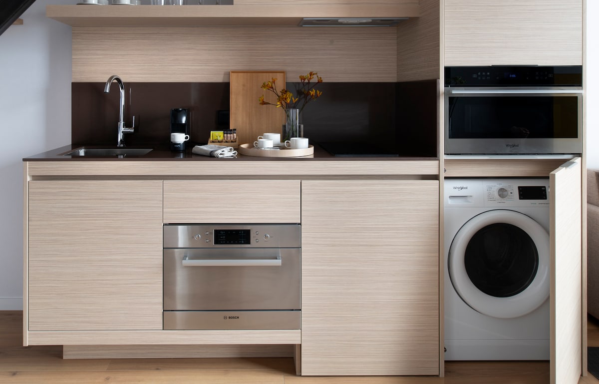 Cazări în apartamente cu servicii incluse, dotate cu mașină de spălat și uscător automat de rufe