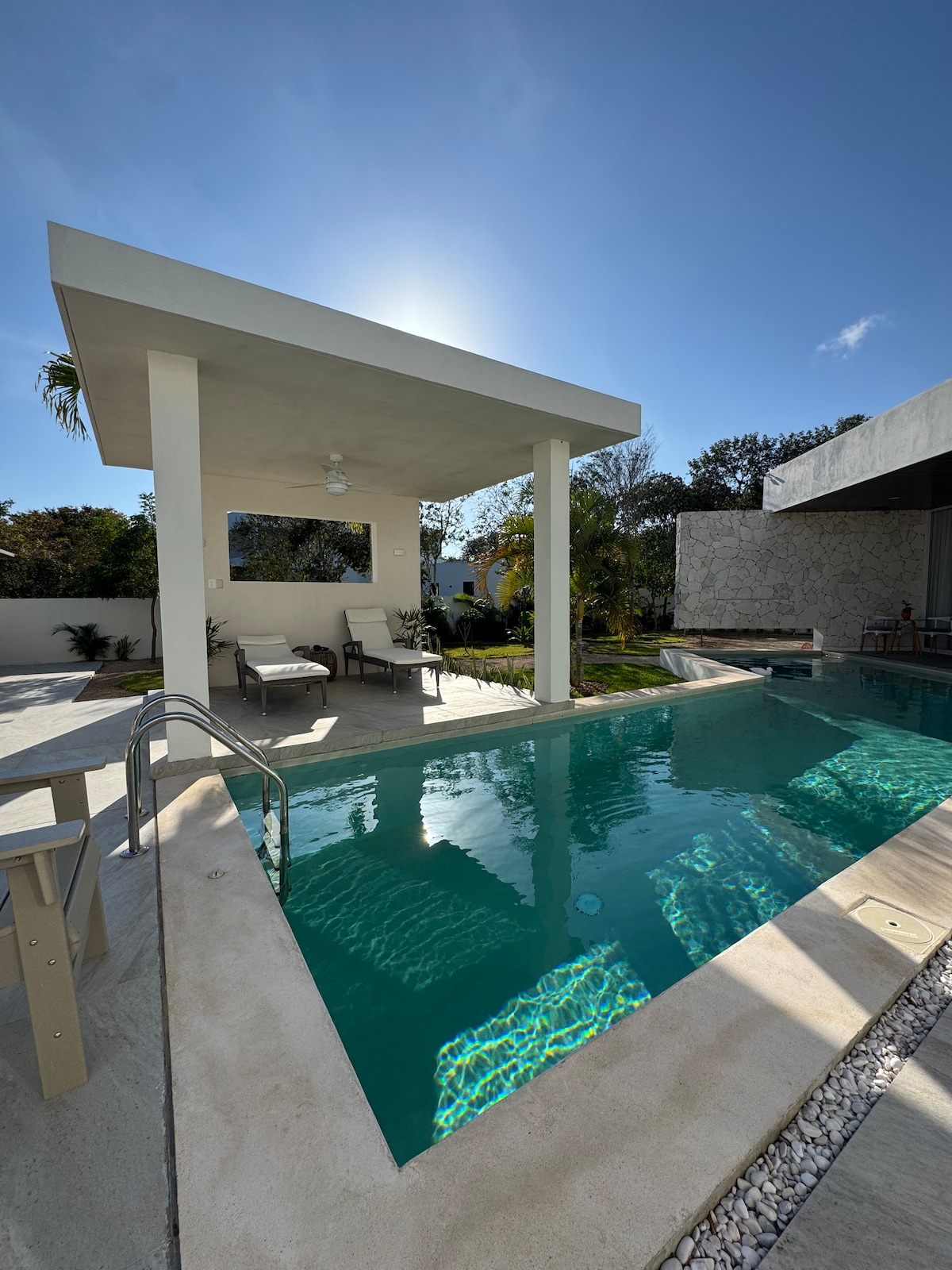 Nature, style and tranquility are yours in this spacious light filled guest house. Enjoy the beauty of our 2.5 acre tropical paradise. Ideal for those looking for a quiet retreat with easy access to the city or the beach. Merida is 20 minutes away one direction and the beach is 20 minutes away the other. Enjoy birds singing, starry nights and beautiful tropical gardens with a koi pond, fountains and a jungle like tropical garden.