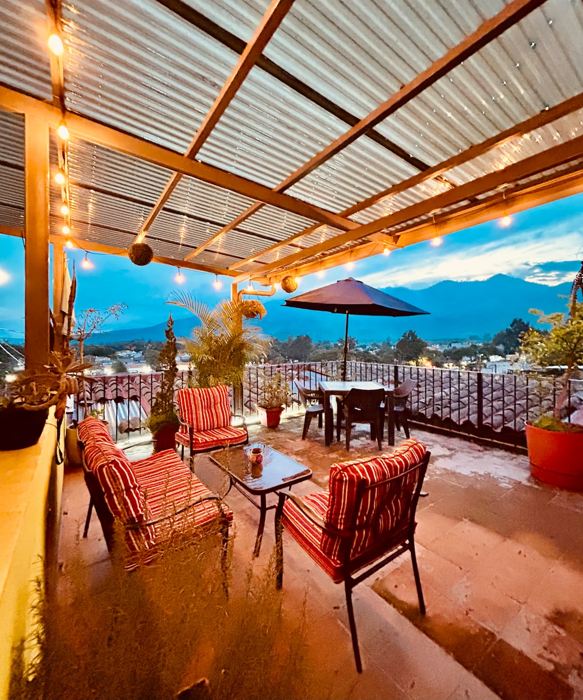 Răsfață-te cu lux și liniște în casa noastră spațioasă cu 3 dormitoare, 5 1/2 băi, care oferă vedere uluitoare la vulcan. Găzduind confortabil până la 10 oaspeți, această casă istorică veche de 300 de ani are farmec original, o terasă spaniolă și grădini interioare și în aer liber. Confortabil lângă șemineu și savurează experiența unică, la doar două străzi de parcul central și la un bloc de mercado de Artesanias. Escapada ta de neuitat îți așteaptă - rezervă-ți șederea acum!
