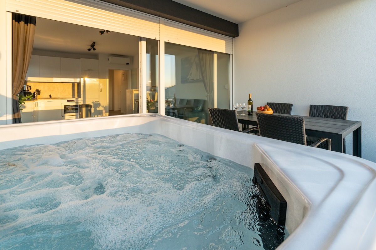 LaVida Penthouse – luksuzni smještaj s panoramskim pogledom na more. Uživajte u privatnom jacuzziju i sauni za potpuni wellness doživljaj. Prostrana terasa, moderan interijer i potpuna privatnost čine ga idealnim za obitelji i grupe. Samo par minuta od plaže. Dodatna zabava uz biljar i pikado. Savršen spoj luksuza, opuštanja i vrhunske lokacije.