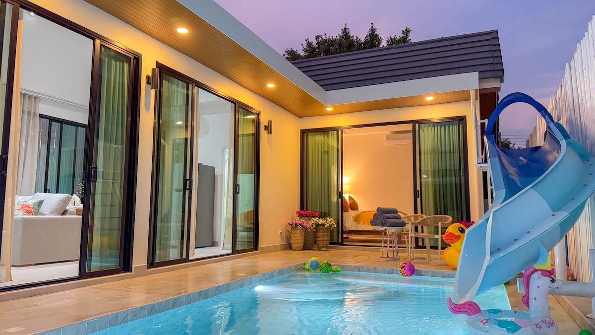 Baan Arthur, vilă liniștită și liniștită cu piscină, care te-ar face să te simți ca și cum ai sta în propria casă. > Vilă privată pentru familie și prieteni care au nevoie de un loc liniștit unde să stea. (până la 10 oaspeți) > Piscină privată cu tobogan și echipament de siguranță pentru copii. > 55” Smart TV și karaoke. > 2 în 1 masă de biliard și hochei pe aer. > Livrare de fructe de mare (atât proaspete, cât și gătite) + Livrare de mâncare + 7-11 Livrare. > 5 minute de mers cu mașina până la 7-11, 20-25 de minute de mers cu mașina până la plaja ChaAm. > Asistență non-stop din partea echipei de gazde.