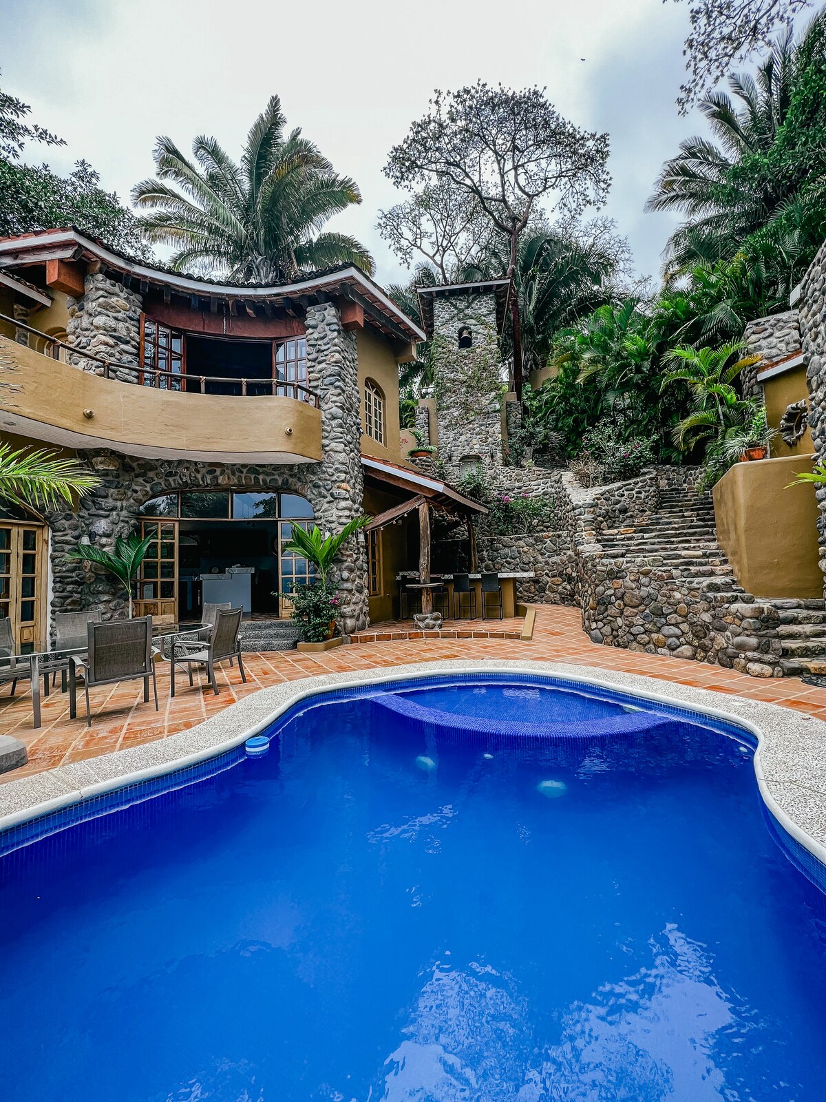 Nestled in the jungle overlooking the ocean, Casa Dos Palmeiras has everything you need, from beautiful views, lush gardens, a pool and a private beach club with amazing pool. A large open air living area lets you socialize with your group and the quiet bedrooms give you plenty of privacy. Take the cobblestone streets of this gated community to the private beach club or walk into the peaceful beach town of Chacala to enjoy local food and ambiance for the perfect Mexico vacation.
