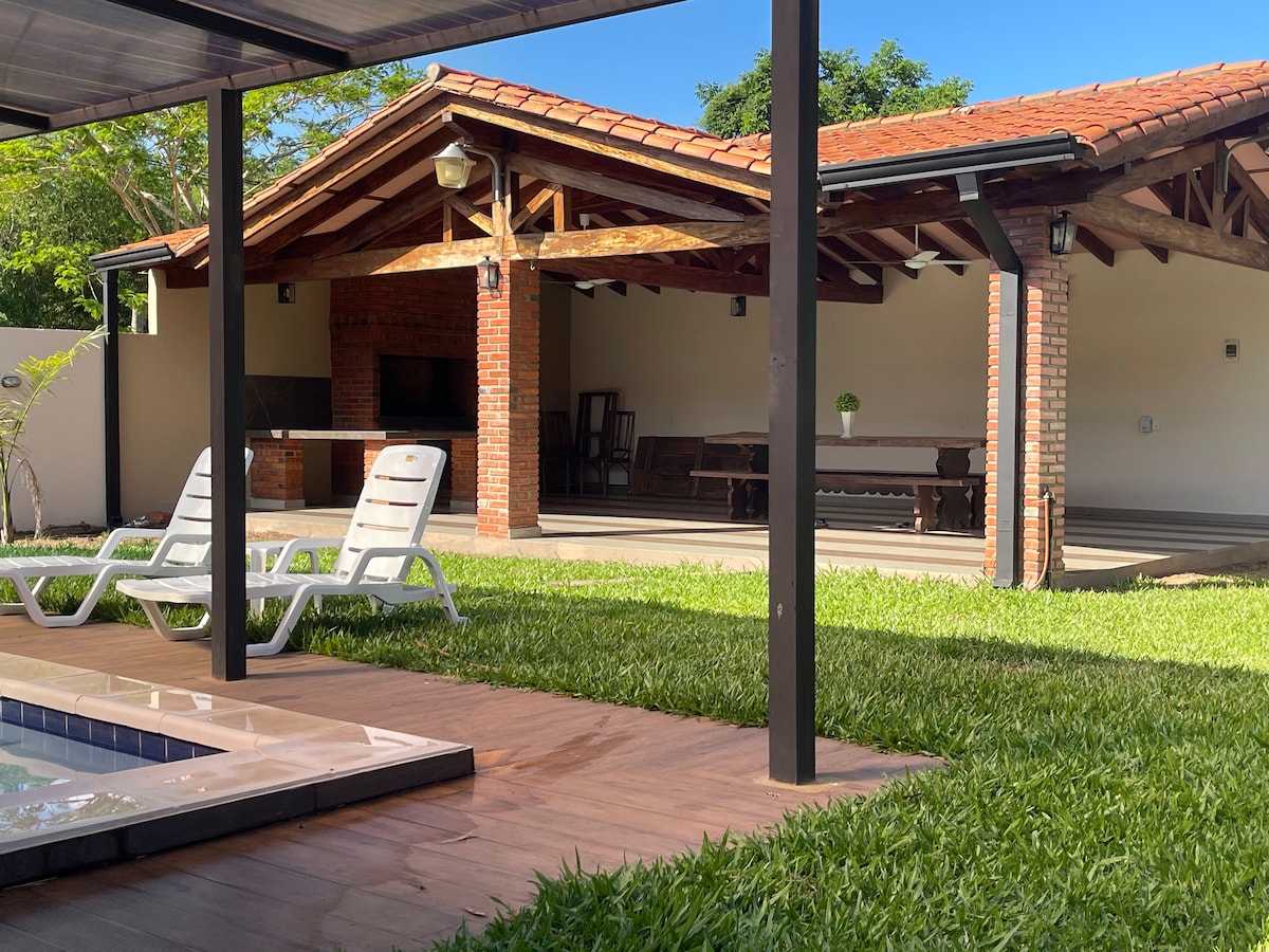 Hermosa, confortable y muy espaciosa casa familiar con Piscina en el mejor y mas seguro barrio de Asuncion, seguridad 24 horas con guardias, barrio tranquilo, todo lo que puedas necesitar esta a pasos! La ciudad tiene excelentes precios y muchas posibilidades, te aseguramos que querras volver con nosotros. Tambien te buscamos del Aeropuerto Internacional, para cualquier consulta estaremos a tus ordenes, te recomendamos los mejores lugares con los mejores precios, sera realmente inolvidable!