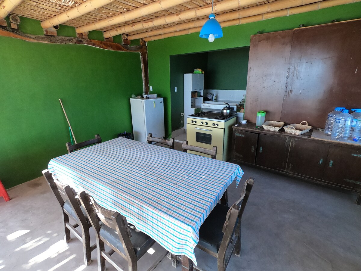The house has Living room Two dining rooms (10 people) Hand football Kitchen equipped with kitchenware included Room 1 2 beds for 1 1/2 people 1 2-bed cabin for 1 1/2 people Room 2 1 queen 1 bed for 2 people 2 full bathrooms Electricity, water and gas in the kitchen It does not have internet or cable at the moment