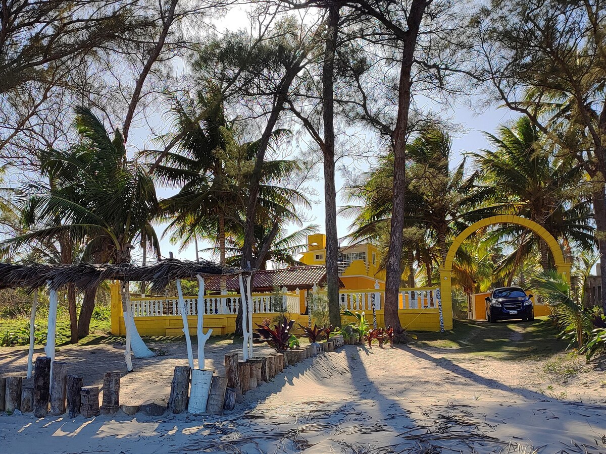 Cabană rurală într-o proprietate de pe plaja Tuxpan, Veracruz. Proprietatea măsoară 1 hectar, iar în față doar trepte are marea, iar în spatele ei are lacul. Din același motiv, oaspeții se bucură de întinderile spațioase de plajă și grădină, precum și de acces și activități în mare și lac. Acest Airbnb se distinge prin dimensiunea și natura zonelor sale în aer liber, liniștea cu care se confruntă și atenția gazdelor noastre.