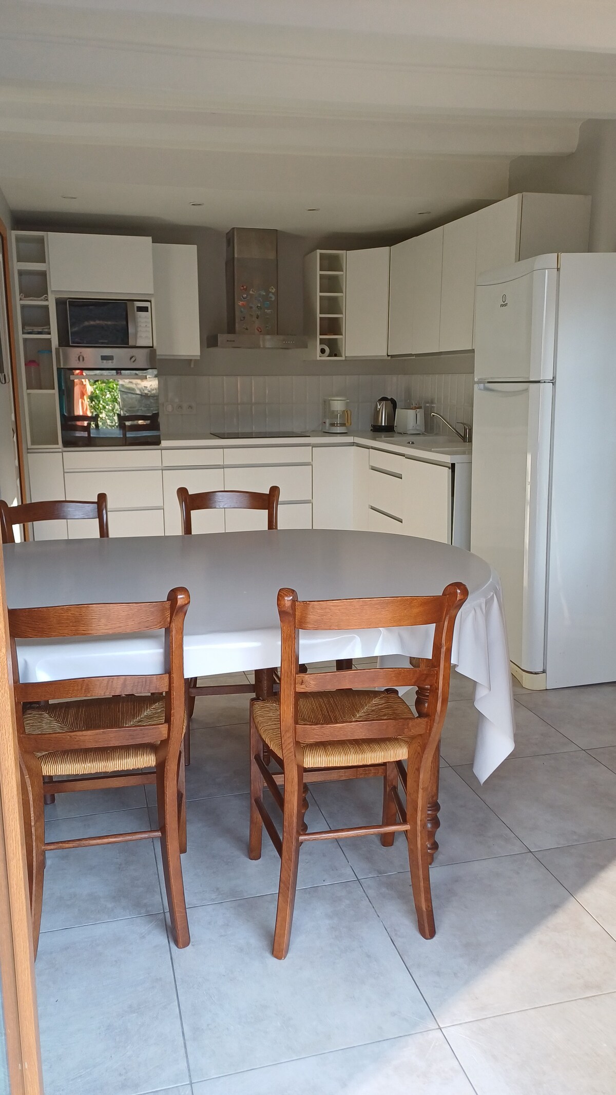 În centrul satului, vă oferim să vă urăm bun venit în această casă caldă pe 3 niveluri de 75m2, dintre care 55m2 pot fi utilizate pentru închiriere (unele camere rămân private). Acesta include un spațiu de living la parter, cu o bucătărie utilată (frigider, plită, cuptor cu microunde, cafetieră, ceainic...) și un living. La etajul 1 vei găsi spațiul de toaletă, cu toaletă, cadă și toaletă. La etajul 2, dormitorul care se târăște și vestiarul său.