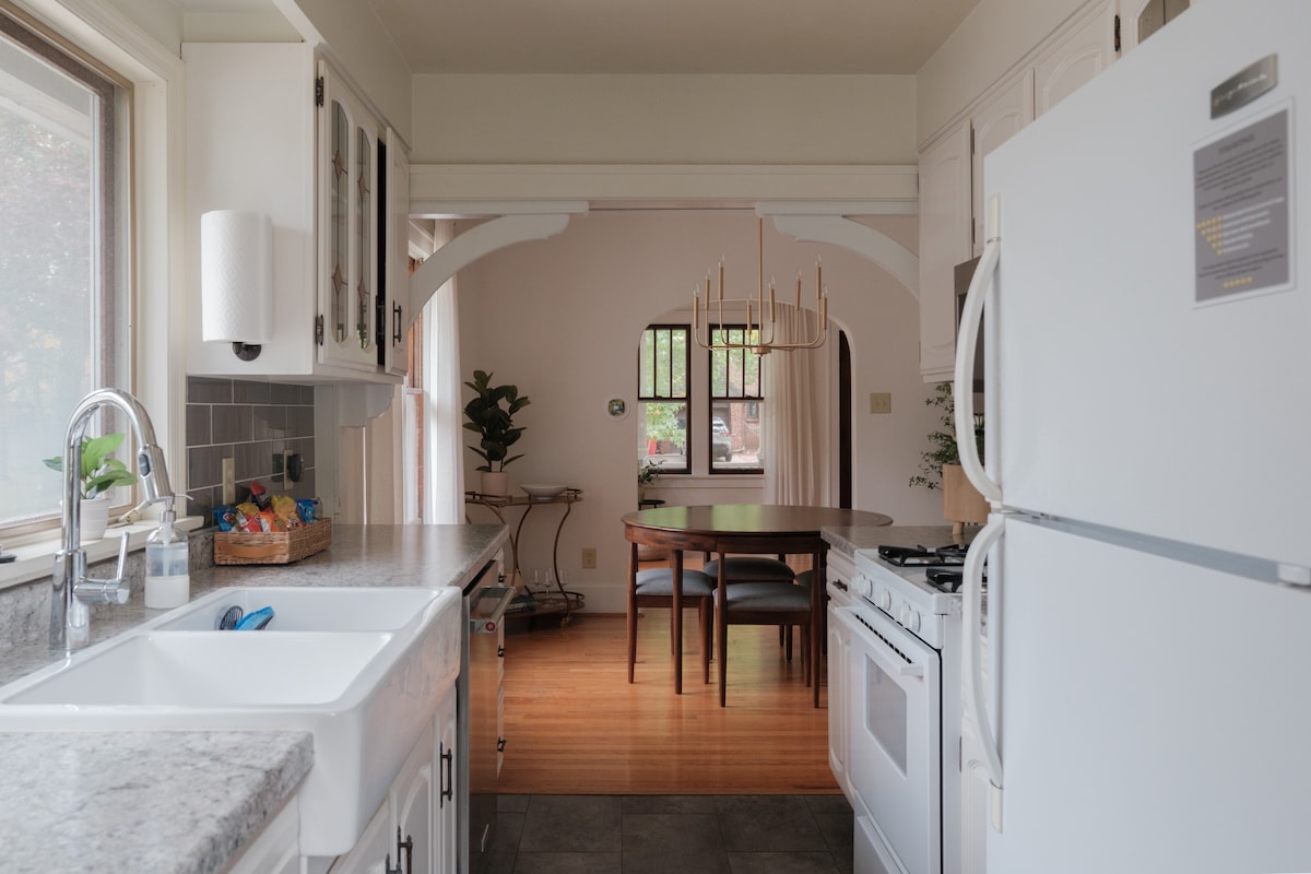 Evadează într-un refugiu fermecător din Urbana, la doar 5 minute de mers pe jos de UIUC, 2 minute până la Spitalul Carle și 5 minute până în centru. Ascuns într-un cartier liniștit, dar la câțiva pași de cafenele, restaurante, studiouri de yoga, parcuri, magazine alimentare și stația de autobuz. Perfect pentru muncă, wellness sau o escapadă confortabilă. Concepută pentru seri de film (TV masiv de 85"), date de gătit (bucătărie de designer) și somn odihnitor, această ședere modernă oferă confort, comoditate și o notă de magie, toate la câțiva pași de tot ce ai nevoie.