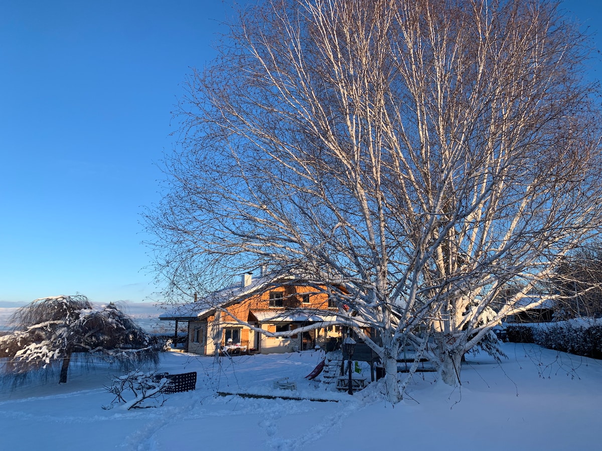 Locuința mea este situată între plajele lacului Geneva și munții Chablais. Este bun pentru călătorii solo și familii (cu copii). Stațiunile de schi Bernex și Thollon cu priveliști surprinzătoare ale lacului Geneva sunt la 15 minute, Chatel la 25 de minute, Morzine la 40 de minute distanță, te vei bucura de vară sau iarnă! Situat ideal pe platoul Gavot pentru a te bucura de bucuriile ciclismului, plimbărilor, drumețiilor, traseelor pe trasee marcate. Geneva este la 1 oră cu mașina, Chamonix 1h40. Plajele lacului Geneva, la 15 minute distanță