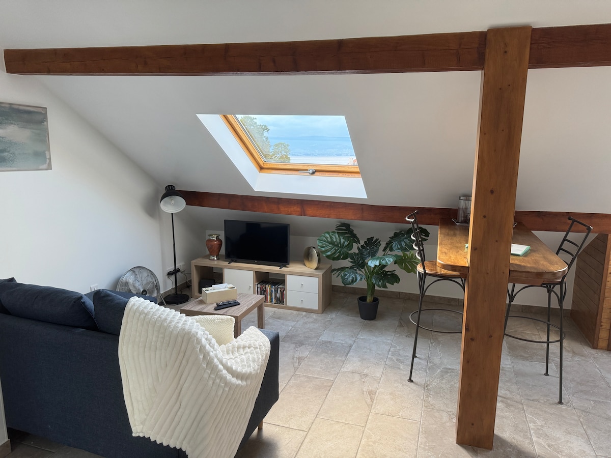 Studio ✨ frumos, cu vedere uimitoare la Lacul Geneva ✨ 🏡 Studio independent într-o cabană cu terasă și grădină, oferind un cadru liniștit și relaxant. Bucură-te de o priveliște uluitoare a lacului Geneva și de o locație excelentă, aproape de Thonon-les-Bains și Evian-les-Bains. Magazine și servicii accesibile rapid. Excelent pentru o ședere relaxantă între lac și munte! 🌿🌅🚗