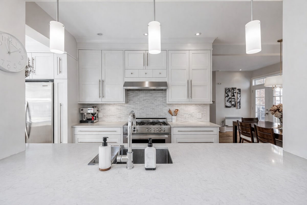 Aceasta este o suită privată întreagă la subsol. Situată într-un cartier liniștit, subsolul nostru frumos renovat cu două dormitoare oferă confort și comoditate. Dispune de mobilier nou-nouț, electrocasnice complete, o bucătărie complet utilată și saltele din spumă cu memorie pe care le aprovizionăm în fiecare dormitor, concepute pentru un sejur odihnitor. Bucură-te de Wi-Fi ultrarapid, un televizor inteligent și curte gratuită și parcare stradală chiar la ușa dvs.
