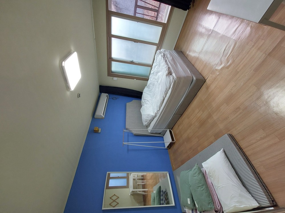 방 1개, 거실1, 욕실 1개로 구성된 깔끔하고 아늑한 공간이며, 숙소 전체를 단독으로 이용하실 수 있습니다. • 옷걸이, 에어컨, 등 기본 생활에 필요한 편의시설이 잘 갖춰져 있습니다. • 주방 공간도 마련되어 있어 간단한 요리도 가능합니다. • 여름에는 시원한 냉방, 겨울에는 따뜻한 보일러 난방이 잘 되어 있어 계절에 상관없이 쾌적한 숙박이 가능합니다. • TV와 와이파이도 설치되어 있어 여가 시간도 편리하게 보내실 수 있습니다. 침대2개
