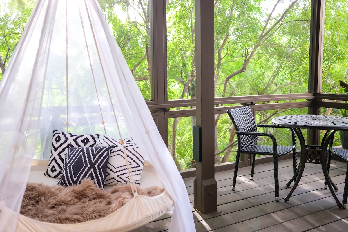 Staying in The pearl feels like sleeping in your imaginary treehouse under the canopy of pepper trees- Charming and peaceful . Completely private with your own personal views of Big Rock peeking through the trees above your outdoor gated and private balcony. Wanna wake up to the sound of frogs from the nearby creek or feel like tuning in to the birds chirping above you ? Dash to town for a hot cup of java and an artsy conversation ? Perhaps a morning swim at the beach , or simply rest at ease .