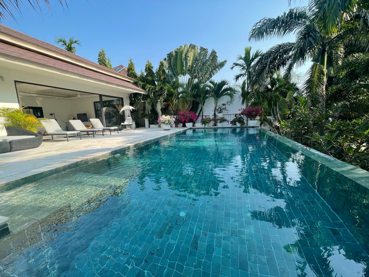Evadează într-o vilă frumoasă, cu piscină și grădină luxuriantă. Acest refugiu liniștit, luminos și confortabil este situat într-o zonă centrală convenabilă, la doar 15 minute de aeroportul Don Muang. Bucură-te de facilități fantastice la fața locului, inclusiv o masă de tenis, masă de biliard, teren de volei, baie de gheață și plimbări cu barca pe canal. Te poți relaxa lângă râu. ÎN apropiere DE : Patru 7-Eleven, CJ Supermarket, Robinson Mall, piață locală, piață de noapte. Spațiul tău luminos și confortabil te așteaptă în această vilă fermecătoare.